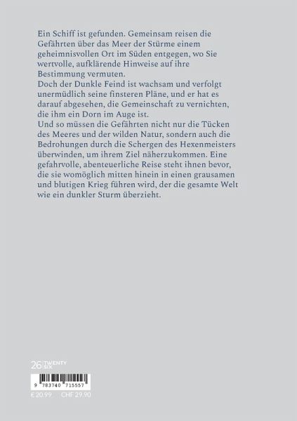 Ein Schiff ist gefunden. Gemeinsam reisen die Gefährten über das Meer der Stürme einem geheimnisvollen Ort im Süden entgegen, wo Sie wertvolle, aufklärende Hinweise auf ihre Bestimmung vermuten.Doch der Dunkle Feind ist wachsam und verfolgt unermüdlich seine finsteren Pläne, und er hat es darauf abgesehen, die Gemeinschaft zu vernichten, die ihm ein Dorn im Auge ist.Und so müssen die Gefährten nicht nur die Tücken des Meeres und der wilden Natur, sondern auch die Bedrohungen durch die Schergen des Hexenmeisters überwinden, um ihrem Ziel näherzukommen. Eine gefahrvolle, abenteuerliche Reise steht ihnen bevor, die sie womöglich mitten hinein in einen grausamen und blutigen Krieg führen wird, der die gesamte Welt wie ein dunkler Sturm überzieht.