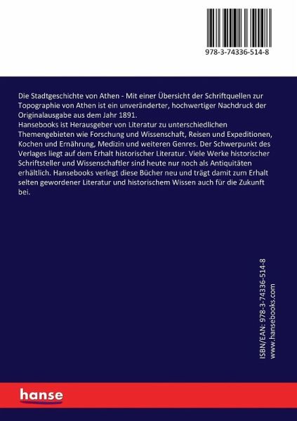 Die Stadtgeschichte von Athen - Mit einer Übersicht der Schriftquellen zur Topographie von Athen ist ein unveränderter, hochwertiger Nachdruck der Originalausgabe aus dem Jahr 1891.