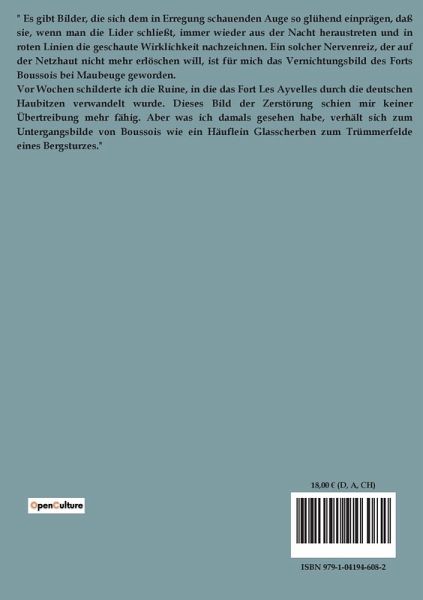 "Die stählerne Mauer: Reise zur deutschen Front, 1915, Zweiter Teil" von Ludwig Ganghofer bietet eine eindrucksvolle Schilderung der Erlebnisse und Beobachtungen des Autors an der deutschen Front während des Ersten Weltkriegs. Ganghofer beschreibt detailliert die Zerstörung und Verwüstung, die der Krieg mit sich bringt, wie etwa die Ruinen des Forts Boussois bei Maubeuge und die Trümmerlandschaften in und um Lille. Er schildert die unermüdliche Arbeit der deutschen Soldaten, die nicht nur kämpfen, sondern auch die Infrastruktur aufrechterhalten und die Versorgung sicherstellen. Der Text beleuchtet auch die Begegnungen mit Verwundeten und Kriegsgefangenen, darunter französische und englische Soldaten sowie indische Truppen, die auf Seiten der Alliierten kämpften. Ganghofer reflektiert über die Grausamkeit des Krieges und die menschlichen Schicksale, die er mit sich bringt, und zeigt dabei eine Mischung aus Bewunderung für die deutsche Kriegsmaschinerie und Abscheu vor der Zerstörung. Der Autor vermittelt ein Bild von der Front, das sowohl die Härte des Krieges als auch die Kameradschaft und den Humor der Soldaten einfängt. Seine Schilderungen sind geprägt von einer tiefen Verbundenheit mit den deutschen Truppen und einer kritischen Sicht auf die Kriegsgegner.