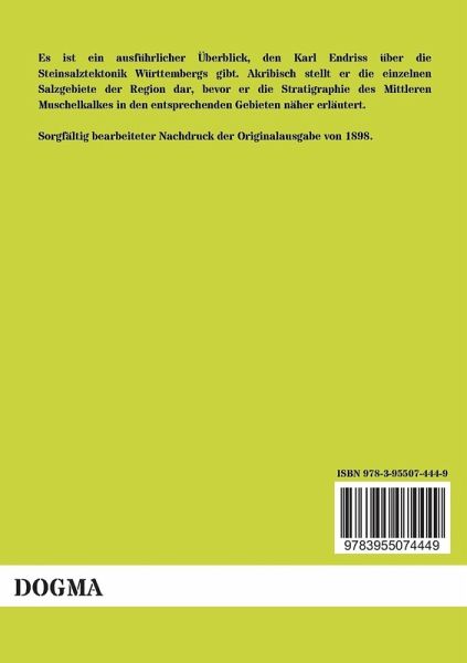 Es ist ein ausführlicher Überblick, den Karl Endriss über die Steinsalztektonik Württembergs gibt. Akribisch stellt er die einzelnen Salzgebiete der Region dar, bevor er die Stratigraphie des Mittleren Muschelkalkes in den entsprechenden Gebieten näher erläutert.