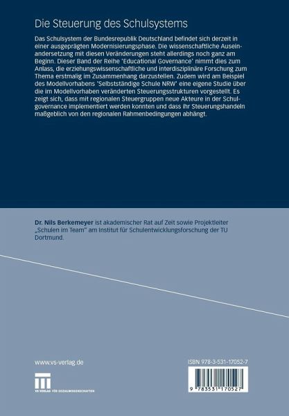Das Schulsystem der Bundesrepublik Deutschland befindet sich derzeit in einer ausgeprägten Modernisierungsphase. Die wissenschaftliche Auseinandersetzung mit diesen Veränderungen steht allerdings noch ganz am Beginn. Dieser Band der Reihe 'Educational Governance' nimmt dies zum Anlass, die erziehungswissenschaftliche und interdisziplinäre Forschung zum Thema erstmalig im Zusammenhang darzustellen. Zudem wird am Beispiel des Modellvorhabens 'Selbstständige Schule NRW' eine eigene Studie über die im Modellvorhaben veränderten Steuerungsstrukturen vorgestellt. Es zeigt sich, dass mit regionalen Steuergruppen neue Akteure in der Schulgovernance implementiert werden konnten und das ihr Steuerungshandeln maßgeblich von den regionalen Rahmenbedingungen abhängt.