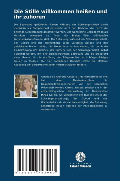 Die Betreuung gehörloser Frauen während der Schwangerschaft durch medizinisches Fachpersonal entspricht nicht den Rechten, die durch die geltende Gesetzgebung garantiert werden, und wenn keine Begleitperson als Vermittler anwesend ist, findet der Dialog über rudimentäre Kommunikationsformen statt. Die Betreuung während der Schwangerschaft, der Geburt und des Wochenbetts sollte verstärkt werden und den gehörlosen Frauen helfen, die Hindernisse zu überwinden, die durch die Einschränkung des Gehörs, der Sprache und der Schwangerschaft selbst auferlegt werden, um eine gleichberechtigte Betreuung und die Eroberung eines Raums für die Ausübung der Bürgerrechte durch hörgeschädigte Frauen zu fördern. Die hier enthaltenen Berichte sollen die effektive Ausübung der Bürgerrechte unter Hörgeschädigten fördern.