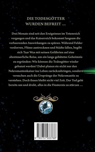 Die Todesgötter wurden befreit. Drei Monate sind seit den Ereignissen im Totenreich vergangen und das Kaiserreich bekommt langsam die verheerenden Auswirkungen zu spüren. Während Felder verdorren, Flüsse austrocknen und Städte fallen, begibt sich Taar Wax mit seinen Gefährten auf eine abenteuerliche Reise, um ein lange gehütetes Geheimnis zu ergründen: Wie können die Todesgötter wieder gebannt werden? Dabei planen sie nicht nur den Nekromantenkaiser ins Leben zurückzubringen, sondern versuchen auch die Ursprünge der Nekromantie zu verstehen. Doch ihnen bleibt nicht viel Zeit. Der Tod geht bereits um und droht, alles in die Finsternis zu stürzen ...…mehr
