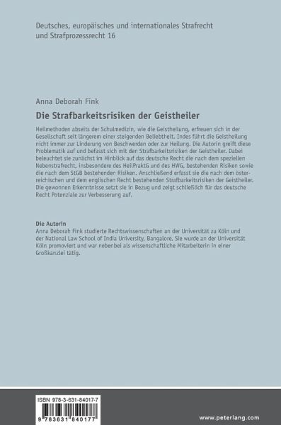 Heilmethoden abseits der Schulmedizin, wie die Geistheilung, erfreuen sich in der Gesellschaft seit längerem einer steigenden Beliebtheit. Indes führt die Geistheilung nicht immer zur Linderung von Beschwerden oder zur Heilung. Die Autorin greift diese Problematik auf und befasst sich mit den Strafbarkeitsrisiken der Geistheiler. Dabei beleuchtet sie zunächst im Hinblick auf das deutsche Recht die nach dem speziellen Nebenstrafrecht, insbesondere des HeilPraktG und des HWG, bestehenden Risiken sowie die nach dem StGB bestehenden Risiken. Anschließend erfasst sie die nach dem österreichischen und dem englischen Recht bestehenden Strafbarkeitsrisiken der Geistheiler. Die gewonnen Erkenntnisse setzt sie in Bezug und zeigt schließlich für das deutsche Recht Potenziale zur Verbesserung auf.
