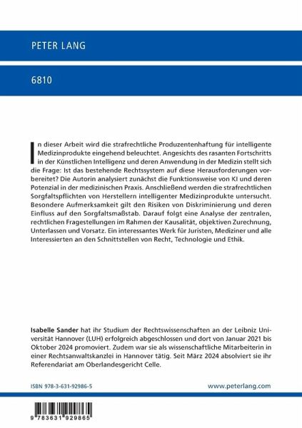 In dieser Arbeit wird die strafrechtliche Produzentenhaftung für intelligente Medizinprodukte eingehend beleuchtet. Angesichts des rasanten Fortschritts in der Künstlichen Intelligenz und deren Anwendung in der Medizin stellt sich die Frage: Ist das bestehende Rechtssystem auf diese Herausforderungen vorbereitet? Die Autorin analysiert zunächst die Funktionsweise von KI und deren Potenzial in der medizinischen Praxis. Anschließend werden die strafrechtlichen Sorgfaltspflichten von Herstellern intelligenter Medizinprodukte untersucht. Besondere Aufmerksamkeit gilt den Risiken von Diskriminierung und deren Einfluss auf den Sorgfaltsmaßstab. Darauf folgt eine Analyse der zentralen, rechtlichen Fragestellungen im Rahmen der Kausalität, objektiven Zurechnung, Unterlassen und Vorsatz. Ein interessantes Werk für Juristen, Mediziner und alle Interessierten an den Schnittstellen von Recht, Technologie und Ethik.
