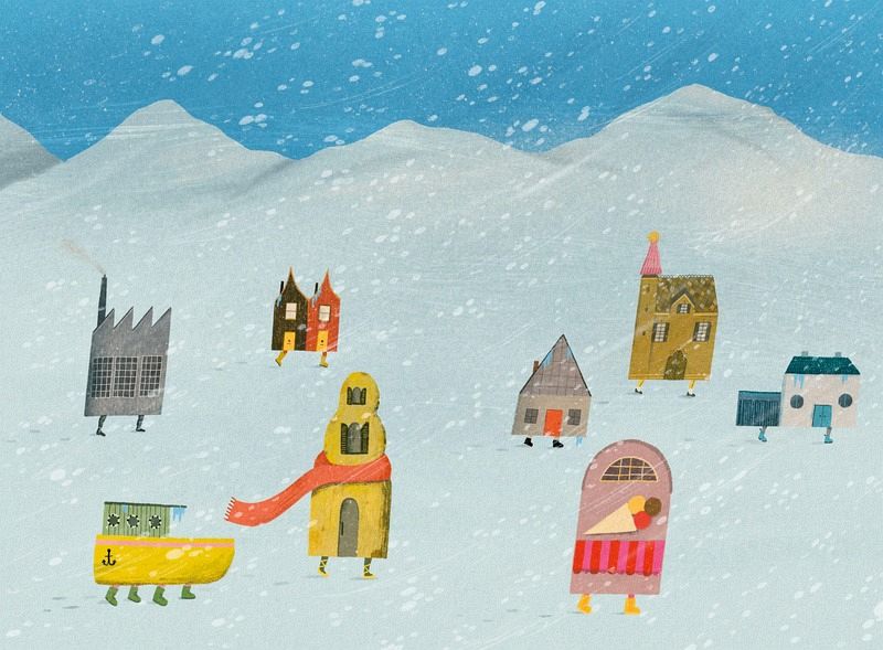 Die Straße haut ab erzählt von einer Häuserzeile, die das Stadtleben satt hat. Kurzerhand ziehen die Häuser als Karawane in die weite Welt hinaus. Unterwegs begegnet jedes Haus einem Tier, das perfekt zu ihm passt, und nimmt es bei sich auf. So lichtet sich die Karawane Haus für Haus, bis nur noch eines übrig bleibt. Nachdem es die ganze Welt gesehen hat, erkennt es, dass sein Platz doch in der Stadt liegt - nun mit neuer Wertschätzung.