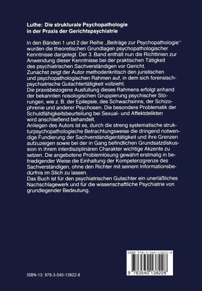 In Band 1 "Verantwortlichkeit, Personlichkeit und Erleben" und Band 2 "Das strukturale System der Psychopathologie" der "Beitrage zur Psychopathologie" hat der Verfasser die theoretischen Grundlagen dargelegt, auf denen im nun mehr vorliegenden Band 3 "Die strukturale Psychopathologie in der Praxis der Gerichtspsychiatrie" die Anwendung dieser psychologischen Kenntnisse bei der praktischen Tatigkeit des psychiatrischen Sachverstandigen vor Gericht aufbaut. Mit der Darstellung von Theorie und Praxis der zentralen Probleme der psychiatrischen Begutachtung im Strafrecht bilden die 3 Bande ein ge schlossenes Ganzes, sie sind aber so konzipiert, daB jeder Band, auch fUr sich gelesen, verstandlich bleibt. Mit der "Strukturalen Psychopathologie in der Praxis der Gerichtspsychia trie" wendet sich der Verfasser in erster Linie an die psychiatrischen Gutachter selbst, an Richter, Strafverteidiger und Staatsanwalte. Aber uber diesen speziel len Interessentenkreis hinaus wendet sich das Gesamtwerk an alle "Psychowis senschaftler", denn es bietet, insbesondere mit seinem zweiten Band, eine in sich geschlossene Konzeption der Psychopathologie, die weit uber das forensi sche Anwendungsgebiet hinausgeht und fUr die wissenschaftliche Psychiatrie an sich von grundlegender Bedeutung ist. In dem hier vorgelegten dritten Band erlautert der Verfasser zunachst aus seiner Sicht das System des Strafrechts, soweit er dessen Kenntnis als unerlaBli che Voraussetzung fUr sachbezogene gutachtliche Aussagen des psychiatrischen Sachverstandigen ansieht. Eine autonome Entscheidungsfahigkeit des Individu urns wird im Strafrecht als "Schuldfahigkeit" unterstellt, von dieser Vorausset zung mllS der Sachverstandige ausgehen, - mag er sie gut heiBen oder nicht.