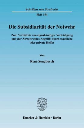 Muss der Angegriffene auf die eigenhändige Ausübung des Notwehrrechts verzichten, sobald sich Dritte der Klärung der Konfliktsituation angenommen haben? - Der Beantwortung dieser Frage, die traditionell unter dem Stichwort 'Subsidiarität der Notwehr' diskutiert wird, nähert sich René Sengbusch in zwei Schritten. Zunächst begründet er, dass §32 StGB kein Recht zur eigenhändigen Verteidigung statuiert. Sodann wendet er sich der Frage zu, unter welchen Voraussetzungen die Hilfe Dritter unter Ausschluss einer eigenhändigen Angriffsabwehr in Anspruch zu nehmen ist.