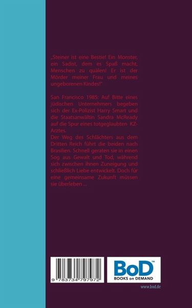 "Steiner ist eine Bestie! Ein Monster, ein Sadist, dem es Spaß macht, Menschen zu quälen! Er ist der Mörder meiner Frau und meines ungeborenen Kindes!"San Francisco 1985: Auf Bitte eines jüdischen Unternehmers begeben sich der Ex-Polizist Harry Smart und die Staatsanwältin Sandra McReady auf die Spur eines totgeglaubten KZ-Arztes.Der Weg des Schlächters aus dem Dritten Reich führt die beiden nach Brasilien. Schnell geraten sie in einen Sog aus Gewalt und Tod, während sich zwischen ihnen Zuneigung und schließlich Liebe entwickelt. Doch für eine gemeinsame Zukunft müssen sie überleben ...
