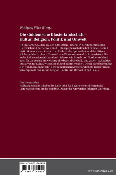 Ob im Norden, Süden, Westen oder Osten - überall in der Bundesrepublik, Österreich und der Schweiz sind Ordensgemeinschaften beheimatet. Es sind Institutionen, die als Zentren der Einkehr, der Spiritualität und der tätigen Nächstenliebe in einem Netzwerk von Klosterorten und -stätten wirkten. Bis in das Reformationsjahrhundert spielten sie in Mittel- und Norddeutschland auch für die soziale Entwicklung eine beachtliche Rolle und gaben nachhaltige Initiativen für Kultur, Wissenschaft und Barmherzigkeit. Dieser Band beschäftigt sich nun insbesondere mit der süddeutschen Klosterlandschaft. Dabei rücken Schwerpunkte aus Kultur, Religion, Politik und Umwelt in den Fokus.