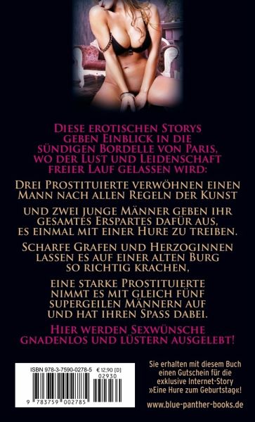 Ich bin mit Henry und Adrien, Pierre und Richard und anderen Personen in den Bordellen von Paris unterwegs und spiele Mäuschen, wenn sie sich verwöhnen lassen. Und ich beobachte die Damen aus dem Gewerbe, wie sie den Herren außergewöhnliche Lustmomenten bescheren.
