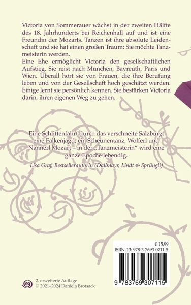 Victoria von Sommerauer wächst in der zweiten Hälfte des 18. Jahrhunderts bei Reichenhall auf und ist eine Freundin der Mozarts. Tanzen ist ihre absolute Leidenschaft und sie hat einen großen Traum: Sie möchte Tanzmeisterin werden. Eine Ehe ermöglicht Victoria den gesellschaftlichen Aufstieg. Sie reist nach München, Bayreuth, Paris und Wien. Überall hört sie von Frauen, die ihre Berufung leben und von der Gesellschaft hoch geschätzt werden. Einige lernt sie persönlich kennen. Sie bestärken Victoria darin, ihren eigenen Weg zu gehen.