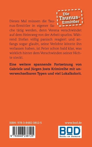 Dieses Mal müssen die Taunus-Ermittler in eigener Sache tätig werden, denn Verena verschwindet auf dem Heimweg von der Arbeit spurlos. Während Stefan völlig panisch reagiert und anfangs sogar glaubt, seine Verlobte könnte ihn verlassen haben, ist Peter schon bald klar, was wirklich hinter dem Verschwinden seiner Nichte steckt.Eine weitere spannende Fortsetzung von Gabriele und Jürgen Josts Krimireihe mit unverwechselbaren Typen und viel Lokalkolorit.