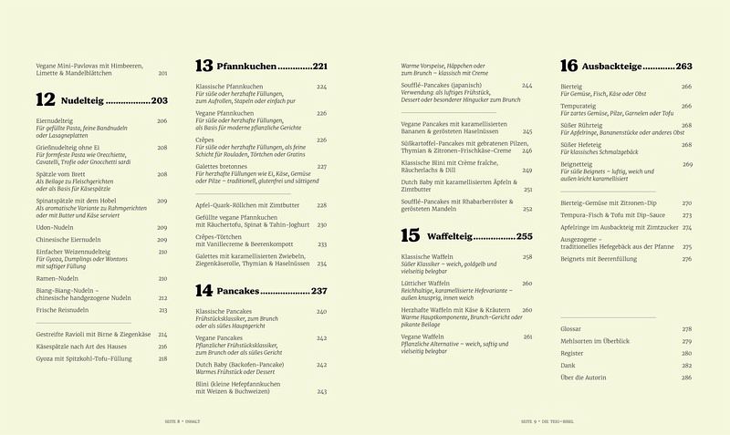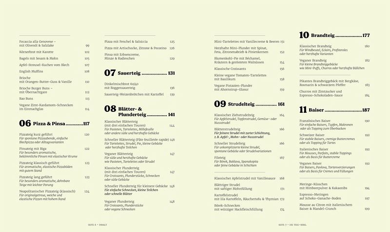 Das Konzept ist klar strukturiert: Das Inhaltsverzeichnis gliedert sich in 16 Teigarten: