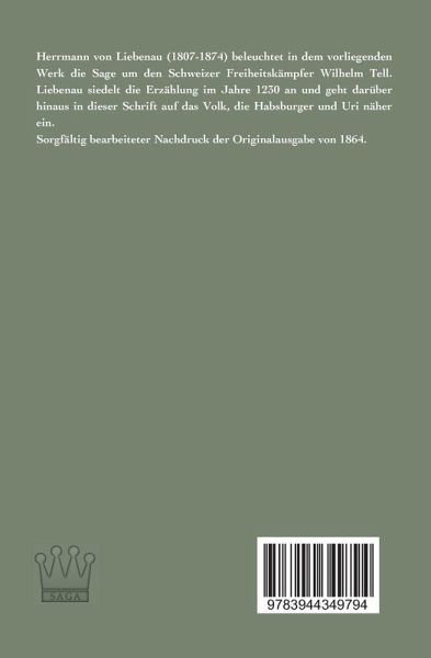 Herrmann von Liebenau (1807-1874) beleuchtet in dem vorliegenden Werk die Sage um den Schweizer Freiheitskämpfer Wilhelm Tell. Liebenau siedelt die Erzählung im Jahre 1230 an und geht darüber hinaus in dieser Schrift auf das Volk, die Habsburger und Uri näher ein.