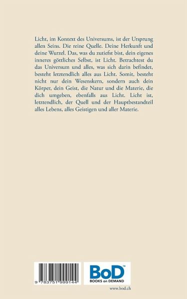 Licht, im Kontext des Universums, ist der Ursprung allen Seins. Die reine Quelle. Deine Herkunft und deine Wurzel. Das, was du zutiefst bist, dein eigenes inneres göttliches Selbst, ist Licht. Betrachtest du das Universum und alles, was sich darin befindet, besteht letztendlich alles aus Licht. Somit, besteht nicht nur dein Wesenskern, sondern auch dein Körper, dein Geist, die Natur und die Materie, die dich umgeben, ebenfalls aus Licht. Licht ist, letztendlich, der Quell und der Hauptbestandteil alles Lebens, alles Geistigen und aller Materie.