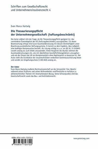 Der Autor widmet sich der Frage, ob die Thesaurierungspflicht geeignet ist, das verminderte Stammkapital der UG (haftungsbeschränkt) auszugleichen. Für deren Beantwortung erfolgt eine kurze Auseinandersetzung mit dessen Sinnhaftigkeit unter Beachtung ausländischer Haftungssysteme. Er kommt zu dem Ergebnis, dass lediglich eine bedingte Kompensation besteht. Als Lösung schlägt er u.a. vor, §§ 30, 31 GmbHG sowohl analog als auch direkt anzuwenden. Einen Hauptteil des Buches nehmen die Auseinandersetzungen ein, wie mit überhöhten Geschäftsführergehältern umzugehen und wie der Einsatz der UG als Komplementärin ohne Kapitalanteil zu bewerten ist. Der Autor zieht die Grundsätze der steuerrechtlichen verdeckten Gewinnausschüttung heran und wendet als Umgehungsschutz § 300 AktG analog an.