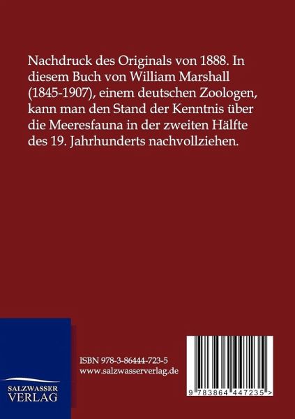 Nachdruck des Originals von 1888. In diesem Buch von William Marshall (1845-1907), einem deutschen Zoologen, kann man den Stand der Kenntnis über die Meeresfauna in der zweiten Hälfte des 19. Jahrhunderts nachvollziehen.