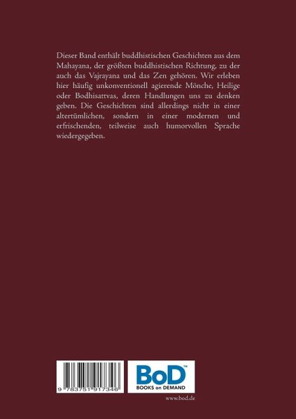 Dieser Band enthält buddhistischen Geschichten aus dem Mahayana, der größten buddhistischen Richtung, zu der auch das Vajrayana und das Zen gehören. Wir erleben hier häufig unkonventionell agierende Mönche, Heilige oder Bodhisattvas, deren Handlungen uns zu denken geben. Die Geschichten sind allerdings nicht in einer altertümlichen, sondern in einer modernen und erfrischenden, teilweise auch humorvollen Sprache wiedergegeben.