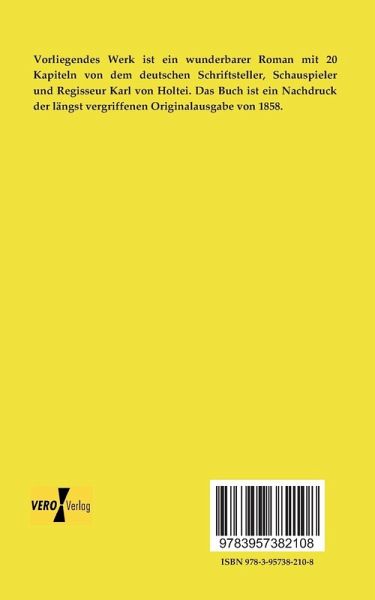 Vorliegendes Werk ist ein wunderbarer Roman mit 20 Kapiteln von dem deutschen Schriftsteller, Schauspieler und Regisseur Karl von Holtei. Das Buch ist ein Nachdruck der längst vergriffenen Originalausgabe von 1858.