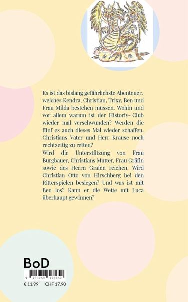 Es ist das bislang gefährlichste Abenteuer, welches Kendra, Christian, Trixy, Ben und Frau Milda bestehen müssen. Wohin und vor allem warum ist der Historiy-Club wieder mal verschwunden? Werden die fünf es auch dieses Mal wieder schaffen, Christians Vater und Herr Krause noch rechtzeitig zu retten? Wird die Unterstützung von Frau Burgbauer, Christians Mutter, Frau Gräfin sowie des Herrn Grafen reichen. Wird Christian Otto von Hirschberg bei den Ritterspielen besiegen? Und was ist mit Ben los? Kann er die Wette mit Luca überhaupt gewinnen?