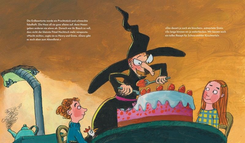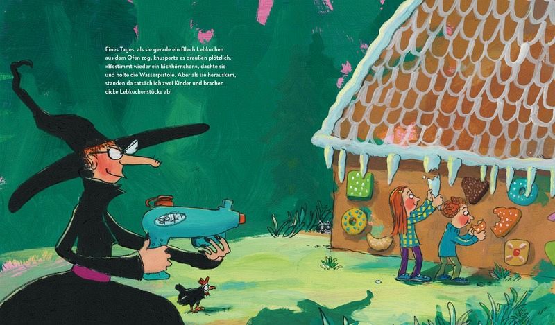 Die Hexe hat mal wieder schlechte Laune! Kein Wunder - sie wohnt in einem Lebkuchenhaus. So ein Haus ist zwar prima, um leckere Kinder anzulocken, aber zum drin Wohnen ziemlich unpraktisch. Dauern picken Vögel an den Dachziegeln, und Eichhörnchen knabbern die Wände an! Doch eines Tages tauchen Greta und Henry im Wald auf und stellen der Hexe die entscheidende Frage: »Wenn du ein Haus aus lauter Lebkuchen hast, wieso isst du dann ausgerechnet Kinder?« Und damit beginnt für die Hexe das süße Leben!