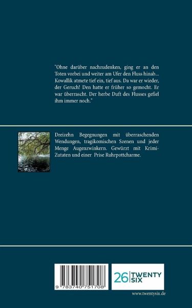 ... Ohne darüber nachzudenken, ging er an den Toten vorbei und weiter am Ufer den Fluss hinab. Über den alten Weg aus Pflastersteinen, der früher einmal als Treidelpfad für die Pferde gedient hatte, die Lastkähne den Fluss entlangzogen, als es noch keine motorisierten Schiffe gab. Kowallik atmete tief ein, tief aus. Da war er wieder, der Geruch! Den hatte er früher so gemocht. Er war überrascht. Der herbe Duft des Flusses gefiel ihm immer noch ...Dreizehn Geschichten über Mord und andere Miseren, zwischenmenschliche Begegnungen mit überraschenden Wendungen, tragikomischen Verstrickungen und jeder Menge Augenzwinkern. Gewürzt mit Krimi-Elementen und einer ordentlichen Prise Ruhrpott-Charme.