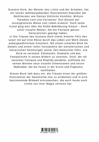 Gustave Doré, der Meister des Lichts und der Schatten, hat mit seinen atemberaubenden Illustrationen Klassiker der Weltliteratur wie Dantes Göttliche Komödie, Miltons Paradise Lost und Cervantes' Don Quijote auf unvergessliche Weise zum Leben erweckt. Doch seine Kunst ging weit über die bloße Bebilderung hinaus - Doré schuf visuelle Welten, die die Fantasie ganzer Generationen geprägt haben.In Die Träume des Gustave Doré nimmt Antoine Félix den Leser mit auf eine Reise durch das Leben und Werk dieses außergewöhnlichen Künstlers. Mit einem scharfen Blick für Details und einem tiefen Verständnis der künstlerischen und literarischen Strömungen seiner Zeit beleuchtet Félix, wie Doré es verstand, Emotionen, Dramatik und das Fantastische in seinen Bildern zu vereinen. Doré, der oft zwischen Fantasie und Realität pendelte, eröffnete mit seinen Werken neue visuelle Dimensionen und setzte Maßstäbe, die bis heute in der Kunst und Popkultur nachhallen.Dieses Buch lädt dazu ein, die Träume eines der größten Illustratoren der Geschichte neu zu entdecken und in eine faszinierende Bildwelt einzutauchen, die auch heute noch nichts von ihrer Magie verloren hat.