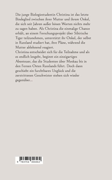 Die junge Biologiestudentin Christina ist das letzteBindeglied zwischen ihrer Mutter und ihremOnkel, die sich seit Jahren außer bösen Wortennichts mehr zu sagen haben. Als Christina dieeinmalige Chance erhält, an einem Forschungsprojektüber Sibirische Tiger teilzunehmen, unterstützt ihrOnkel, der selbst in Russland studiert hat, ihre Pläne,während die Mutter ablehnend reagiert.Christina entscheidet sich für die Teilnahme undals es endlich losgeht, beginnt ein einzigartigesAbenteuer, das die Studenten über Moskau bis inden Fernen Osten Russlands führt. Doch danngeschieht ein furchtbares Unglück und diezerstrittenen Geschwister stehen sich wiedergegenüber.