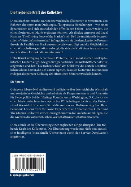 Dieses Buch untersucht, warum österreichische Ökonomen es versäumen, den Rahmen der spontanen Ordnung auf kooperative Beziehungen - wie einen dynamischen und sich entwickelnden öffentlichen Sektor - anzuwenden, die einen florierenden Markt ergänzen könnten. Als direkte Antwort auf Israel Kirzners "The Driving Force of the Market" stellt sie die traditionelle österreichische Wirtschaftswissenschaft infrage, indem sie die demokratische Prozesstheorie als Parallele zur Marktprozesstheorie vorschlägt und die Möglichkeiten einer Wirtschaftsorganisation aufzeigt, die sich die Kraft einer transparenten und effektiven Demokratie zunutze macht. Unter Berücksichtigung der zentralen Probleme, die in sozialistischen und kapitalistischen Ländern aufgrund eigennütziger politischer und wirtschaftlicher Akteure aufgetreten sind, hebt "Die treibende Kraft des Kollektivs"die Vorteile des öffentlichen Sektors hervor, die sich daraus ergeben, dass sich Kultur und Institutionen endogen als spontane Ordnung des öffentlichen Sektors entwickeln können
