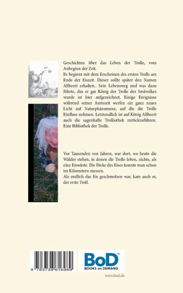 Geschichten über das Leben der Trolle, vom Anbeginn der Zeit.Es beginnt mit dem Erscheinen des ersten Trolls am Ende der Eiszeit. Dieser sollte später den Namen Allbeert erhalten.. Sein Lebensweg und was dazu führte, das er gar König der Trolle des Småvolkes wurde ist hier aufgezeichnet. Einige Ereignisse während seiner Amtszeit werfen ein ganz neues Licht auf Naturphänomene, auf die die Trolle Einfluss nehmen. Letztendlich ist auf König Allbeert auch die sagenhafte Trolliothek zurückzuführen. Eine Bibliothek der Trolle.