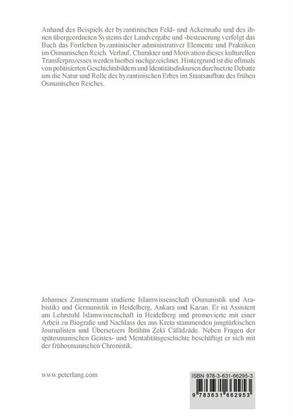 Anhand des Beispiels der byzantinischen Feld- und Ackermaße und des ihnen übergeordneten Systems der Landvergabe und -besteuerung verfolgt das Buch das Fortleben byzantinischer administrativer Elemente und Praktiken im Osmanischen Reich. Verlauf, Charakter und Motivation dieses kulturellen Transferprozesses werden hierbei nachgezeichnet. Hintergrund ist die oftmals von politisierten Geschichtsbildern und Identitätsdiskursen durchsetzte Debatte um die Natur und Rolle des byzantinischen Erbes im Staatsaufbau des frühen Osmanischen Reiches.