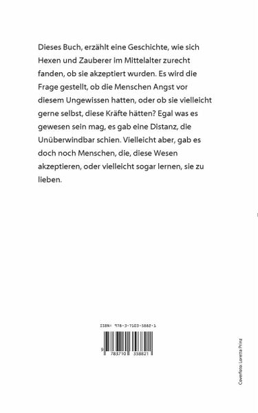 Das Buch handelt von einer Hexe im Mittelalter. Sie lernt im lauf der Geschichte viel über die, Menschen und warum manche so negativ auf die Reagieren. Sie lernt aber nicht nur die Menschen kennen, die sie verachten, sondern auch Andere.
