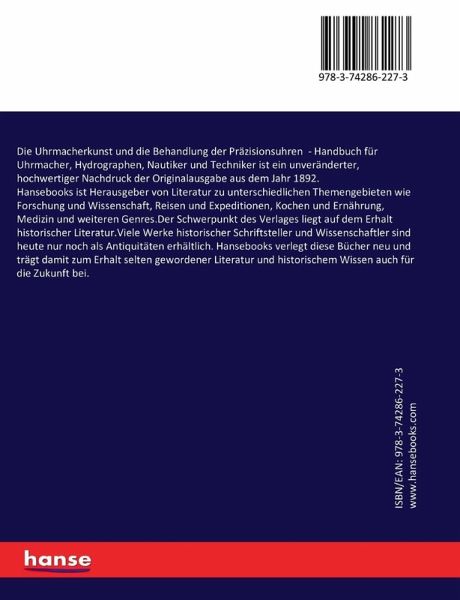 Die Uhrmacherkunst und die Behandlung der Präzisionsuhren - Handbuch für Uhrmacher, Hydrographen, Nautiker und Techniker ist ein unveränderter, hochwertiger Nachdruck der Originalausgabe aus dem Jahr 1892.