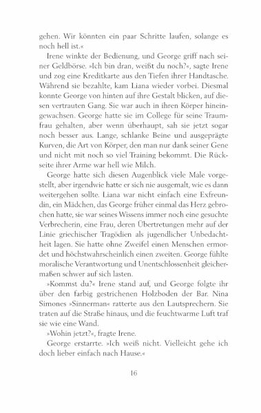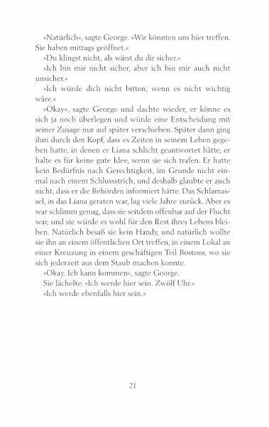 Wir reisen durch die Zeit, denn nicht nur die Gegenwart, sondern auch das Vergangene ist Teil dieses Thrillers, welches sich irgendwann nahtlos ineinander fügt. Spannend sind hier lediglich die Cliffhanger die uns eigentlich in jedem Kapitel erwarten. Letztendlich ist es ein Thriller auf hohem Niveau, dem ich allerdings nur durch die eiskalte Liana nichts abgewinnen konnte. Völlig gefühlskalt und ohne echte Emotionen erschien sie mir und auf Grund dessen konnte ich mich nicht auf das Buch einlassen, da ich mich oft fragte, warum George so oder so handelt, anstatt einfach nur den Kontakt zu Liana / Jane abzubrechen. Er handelt oft völlig blauäugig und deshalb konnte ich ihn einfach nicht ernst nehmen.