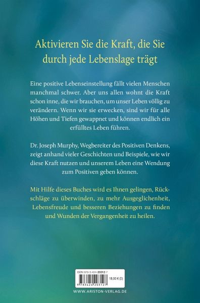 Dr. Joseph Murphy gilt als der bekannteste Autor zum Thema Positives Denken, dessen Bücher sich weltweit millionenfach verkaufen. In dieser Neuausgabe eines seiner bekanntesten Werke zeigt er auf die ihm eigene, einzigartige Weise, welch innere Kraft in uns allen schlummert und wie wir sie zu unseren Gunsten nutzen können. Er liefert uns den Schlüssel zu einem positiveren Selbstbild und einer Weltanschauung, in der wir Wunder bewirken können, wenn wir ein paar simple Tricks beherrschen. Denn egal wie unerreichbar unsere größten Träume von Glück und Erfolg erscheinen mögen, wir haben die Kraft, unser Leben zu verändern. Mit Hilfe dieses Buches wird es Ihnen gelingen, in einfachen Schritten zu mehr Ausgeglichenheit und Lebensfreude zu finden, Wunden der Vergangenheit zu heilen und die Kontrolle über ein wirklich erfülltes Leben zu erlangen.