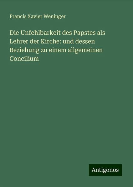 Die Unfehlbarkeit des Papstes als Lehrer der Kirche: und dessen Beziehung zu einem allgemeinen Concilium - Weninger, Francis Xavier