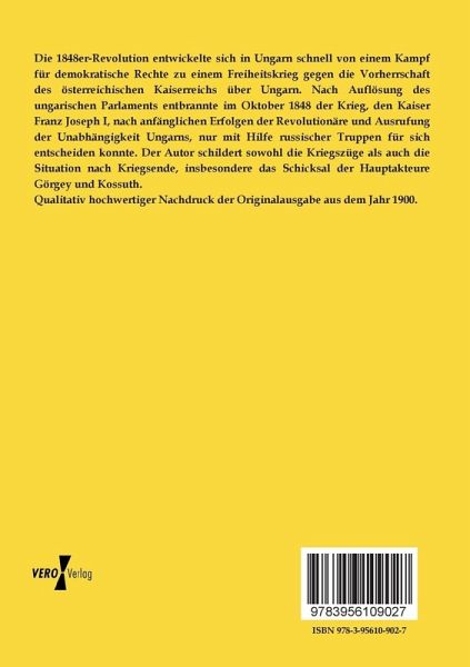 Die 1848er-Revolution entwickelte sich in Ungarn schnell von einem Kampf für demokratische Rechte zu einem Freiheitskrieg gegen die Vorherrschaft des österreichischen Kaiserreichs über Ungarn. Nach Auflösung des ungarischen Parlaments entbrannte im Oktober 1848 der Krieg, den Kaiser Franz Joseph I, nach anfänglichen Erfolgen der Revolutionäre und Ausrufung der Unabhängigkeit Ungarns, nur mit Hilfe russischer Truppen für sich entscheiden konnte. Der Autor schildert sowohl die Kriegszüge als auch die Situation nach Kriegsende, insbesondere das Schicksal der Hauptakteure Görgey und Kossuth.