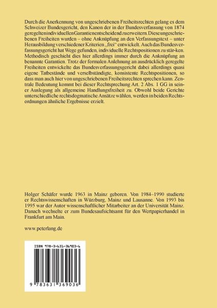 Durch die Anerkennung von ungeschriebenen Freiheitsrechten gelang es dem Schweizer Bundesgericht, den Kanon der in der Bundesverfassung von 1874 geregelten individuellen Garantien entscheidend zu erweitern. Diese ungeschriebenen Freiheiten wurden - ohne Anknüpfung an den Verfassungstext - unter Herausbildung verschiedener Kriterien "frei" entwickelt. Auch das Bundesverfassungsgericht hat Wege gefunden, individuelle Rechtspositionen zu stärken. Methodisch geschieht dies hier allerdings immer durch die Anknüpfung an benannte Garantien. Trotz der formalen Anlehnung an ausdrücklich geregelte Freiheiten entwickelte das Bundesverfassungsgericht dabei allerdings quasi eigene Tatbestände und verselbständigte, konsistente Rechtspositionen, so dass man auch hier von ungeschriebenen Freiheitsrechten sprechen kann. Zentrale Bedeutung kommt bei dieser Rechtsprechung Art. 2 Abs. 1 GG in seiner Auslegung als allgemeine Handlungsfreiheit zu. Obwohl beide Gerichte unterschiedliche rechtsdogmatische Ansätze wählen, werden in beiden Rechtsordnungen ähnliche Ergebnisse erzielt.