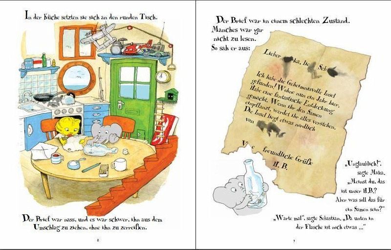 Beim Angeln finden Kater Mika und Elefant Sebastian eine Flaschenpost mit einem geheimnisvollen Samenkorn darin. Sie pflanzen ihn ein und über Nacht wächst daraus eine gigantische Riesenbirne, die sich auf ihrem Grundstück breitmacht. Ein Wunder der Natur, mit dem ein rasantes Abenteuer seinen Lauf nimmt.Nur wegbewegen lässt sich die Birne nicht - so schwer, wie sie ist. Auch Professor Glykose befasst sich mit der Sache und kurzerhand wird beschlossen, die Frucht auszuhöhlen und nach und nach abzutransportieren. Doch durch ein Missgeschick setzt sich der Anhänger, auf den die Freunde die ausgehöhlte Birne gehievt haben, in Bewegung und rumpelt mit viel Getöse den Berg hinab. Mit einem Riesenplatsch landet sie im Meer! Dort treibt die Birne samt Mika, Sebastian und Professor Glykose an Bord einer abenteuerlichen Reise entgegen ...