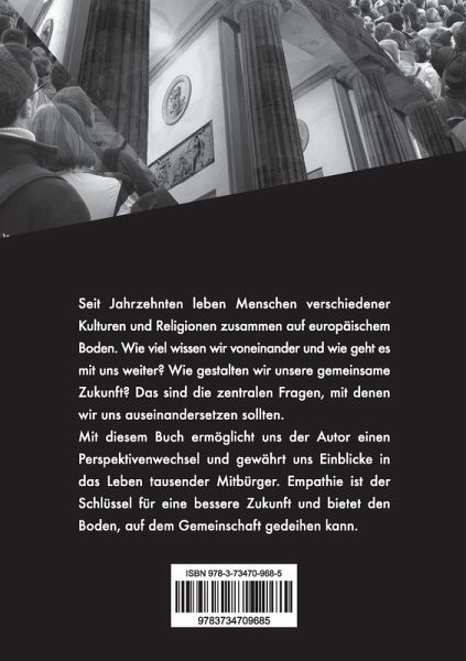 Seit Jahrzehnten leben Menschen verschiedener Kulturen und Religionen zusammen auf europäischem Boden. Wie viel wissen wir voneinander und wie geht es mit uns weiter? Wie gestalten wir unsere gemeinsame Zukunft? Das sind die zentralen Fragen, mit denen wir uns auseinandersetzen sollten und mit diesem Buch ermöglicht uns der Autor einen Perspektivenwechsel. Empathie ist der Schlüssel für eine bessere Zukunft und bietet den Boden, auf dem Gemeinschaft gedeihen kann.