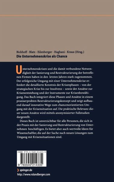 Dieses Buch ist unverzichtbar für alle Personen, die sich in der Praxis mit der Sanierung und Restrukturierung von Unternehmen beschäftigen. Es bietet aber auch wertvolle Ideen für Wissenschaftler, die auf der Suche nach neuen Lösungen zum Umgang mit Krisensituationen sind.