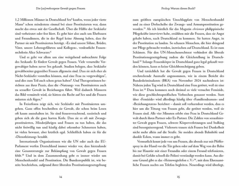 Gewalt gegen Frauen hat in Deutschland erschreckende Ausmaße angenommen: Jeden Tag wird eine Frau ermordet, alle paar Minuten erlebt eine Frau brutale Gewalt. Im öffentlichen Raum haben Frauen und Mädchen Angst vor Übergriffen. Wie hängt diese Entwicklung mit unserem Umgang mit Prostitution zusammen? Freier, das belegen Studien und Experten, gehen nicht nur immer brutaler mit Prostituierten um, sie sind auch gewaltbereiter gegen Frauen allgemein. Viele verurteilte Sexualstraftäter waren zuvor Sexkäufer. Darum geht Prostitution uns alle an: Sexkauf trägt zur Verrohung unserer Gesellschaft bei und ist ein Hindernis für die Gleichstellung. Dieses Buch klärt und rüttelt auf. Es erzählt erschütternde Geschichten von Frauen, die als Prostituierte arbeiten, und legt die dramatischen Konsequenzen für diese Frauen, aber auch für uns als Gesellschaft offen. Und es zeigt Wege aus dieser Misere, denn eine gewaltfreiere Welt für Frauen und Mädchen ist möglich.