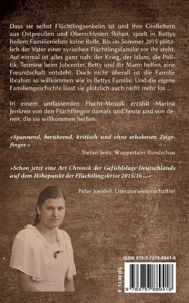 Dass sie selbst Flüchtlingsenkelin ist und ihre Großeltern aus Ostpreußen und Oberschlesien flohen, spielt in Bettys heilem Familienleben keine Rolle. Bis im Sommer 2015 plötzlich der Vater einer syrischen Flüchtlingsfamilie vor ihr steht. Auf einmal ist alles ganz nah: der Krieg, der Islam, die Politik, Termine beim Jobcenter. Betty und ihr Mann helfen, eine Freundschaft entsteht. Doch nicht überall ist die Familie Ibrahim so willkommen wie in Bettys Familie. Und die eigene Familiengeschichte lässt sie plötzlich auch nicht mehr los ...In einem umfassenden Flucht-Mosaik erzählt Marina Jenkner von den Flüchtlingen damals und heute und von denen, die sie willkommen heißen.