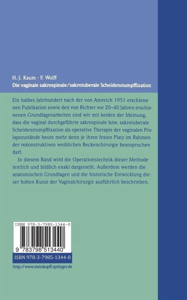 Ein halbes Jahrhundert nach der von Amreich 1951 erschienenen Publikation sowie den von Richter vor 20-40 Jahren erschienenen Grundlagenarbeiten sind wir mit beiden der Meinung, dass die vaginal durchgeführte sakrospinale bzw. sakrotuberale Scheidenstumpffixation als operative Therapie der vaginalen Prolapszustände heute mehr denn je ihren festen Platz im Rahmen der rekonstruktiven weiblichen Beckenchirurgie beanspruchen darf. In diesem Band wird die Operationstechnik dieser Methode textlich und bildlich exakt dargestellt. Außerdem werden die anatomischen Grundlagen und die historische Entwicklung dieser hohen Kunst der Vaginalchirurgie ausführlich beschrieben.