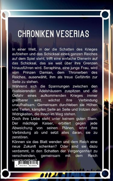 In einer Welt, in der die Schatten des Krieges aufziehen und das Schicksal eines ganzen Reiches auf dem Spiel steht, trifft eine einfache Dienerin auf das Schicksal, das sie weit über ihre Grenzen hinausführen wird. Seraphina, eine junge Frau, wird vom Prinzen Damian, dem Thronerben des Reiches, auserwählt, ihm als treue Gefährtin zur Seite zu stehen.Während sich die Spannungen zwischen den rivalisierenden Adelshäusern zuspitzen und die Gefahr eines aufkommenden Krieges immer greifbarer wird, wächst ihre Verbindung unaufhaltsam. Gemeinsam durchleben sie Höhen und Tiefen, kämpfen Seite an Seite und trotzen den Widrigkeiten, die ihnen im Weg stehen.Doch ihre Liebe steht unter keinem guten Stern. Der mächtige Kaiser, erbittert gegen jede Abweichung von seinen Plänen, lehnt ihre Verbindung ab und setzt alles daran, sie zu zerstören. Können sie das Blatt wenden und dem Reich eine neue Zukunft schenken? Oder sind sie dazu verdammt, in den Schatten der Vergangenheit zu verschwinden, gemeinsam mit dem Reich unterzugehen?