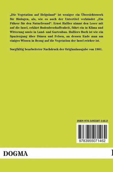 Die Vegetation auf Helgoland ist weniger ein Übersichtswerk für Biologen, als, wie es auch der Untertitel verkündet Ein Führer für den Naturfreund . Ernst Hallier nimmt den Leser mit auf die Insel, erklärt Bodenbeschaffenheit, führt ein in Klima und Witterung sowie in Land- und Gartenbau. Halliers Buch ist wie ein Spaziergang über Dünen und Felsen, an dessen Ende man um einiges Wissen in Bezug auf die Vegetation der Insel reicher ist.