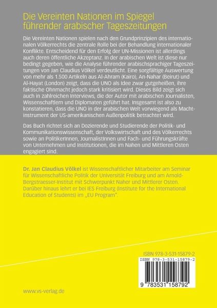 Die Vereinten Nationen spielen nach den Grundprinzipien des internationalen Völkerrechts die zentrale Rolle bei der Behandlung internationaler Konflikte. Entscheidend für den Erfolg der UN-Missionen ist allerdings auch deren öffentliche Akzeptanz. In der arabischen Welt ist diese nur bedingt gegeben, wie die Analyse führender arabischsprachiger Tageszeitungen von Jan Claudius Völkel verdeutlicht. Eine sorgfältige Auswertung von mehr als 1.500 Artikeln aus Al-Ahram (Kairo), An-Nahar (Beirut) und Al-Hayat (London) zeigt, dass die UNO als Idee zwar gutgeheißen, ihre faktische Ohnmacht jedoch stark kritisiert wird. Dieses Bild zeigt sich auch in zahlreichen Interviews, die der Autor mit arabischen Journalisten, Wissenschaftlern und Diplomaten geführt hat. Insgesamt ist also zu konstatieren, dass die UNO in der arabischen Welt vorwiegend als Machtinstrument der US-amerikanischen Außenpolitik betrachtet wird.