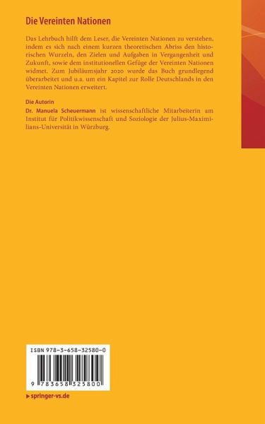 Das Lehrbuch zielt darauf ab, die Vereinten Nationen kennenzulernen. Nach einem kurzen theoretischen Abriss behandelt es die historischen Wurzeln, die Ziele und Aufgaben in Vergangenheit und Zukunft sowie das institutionelle Wirkgefüge der Vereinten Nationen. Zum Jubiläumsjahr 2020 wurde das Buch grundlegend überarbeitet und u.a. um ein Kapitel zur Rolle Deutschlands in den Vereinten Nationen erweitert.