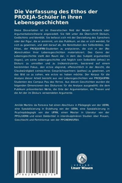 Diese Dissertation ist im theoretischen Feld der Neuen Rhetorik oder Argumentationstheorie angesiedelt. Sie fällt unter die Überschrift Diskurs, Gedächtnis und Identität. Sie befasst sich mit der Darstellung des Sprechers oder der Figur, die er annimmt, um das Publikum, an das er sich wendet, für sich zu gewinnen, und zielt darauf ab, die Konstitution des Selbstbildes, des Ethos, der PROEJA/IFRN-Studenten zu analysieren, die sich in der (Re-)Konstruktion ihrer Lebensgeschichten materialisiert. Das Genre der Lebensgeschichte stellt den Raum dar, in dem das Subjekt argumentiert (logos), um seine Lebensgeschichte und folglich sein Selbstbild (ethos) im Diskurs zu umreißen und zu (re)konstruieren, basierend auf einem bestimmten Fokus, den er/sie abgrenzt, offensichtlich in der Absicht, die Glaubwürdigkeit seines/ihres Gesprächspartners (pathos) zu gewinnen, um das Bild so zu sehen, wie er/sie es haben möchte. Der Korpus für die Analyse dieser Arbeit besteht aus vier Lebensgeschichtenvon PROEJA/IFRN-Studenten des Campus Pau dos Ferros. Aus diesen Geschichten wurden die folgenden Dimensionen des Diskurses für die Analyse ausgewählt: die dem Publikum präsentierten Werte, die Orte der Argumentation, die Thesen und die Art der im Diskurs verwendeten Argumente.